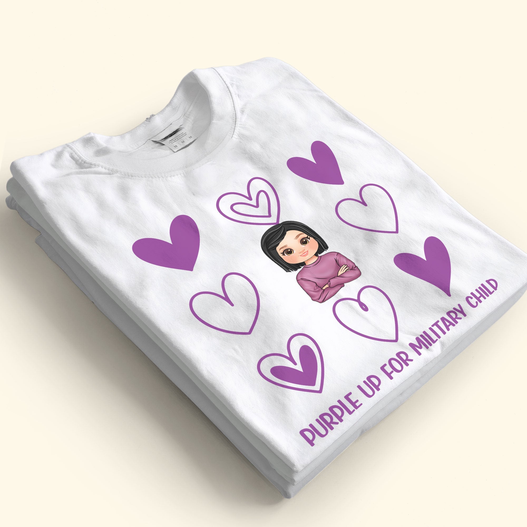 Show your support and “Purple Up for Military Child” with our Personalized Shirt! This custom shirt is designed to honor the Month of the Military Child and raise awareness for the challenges and sacrifices military children face. Featuring a unique and vibrant purple design, it’s the perfect way to show your support for military families and children.